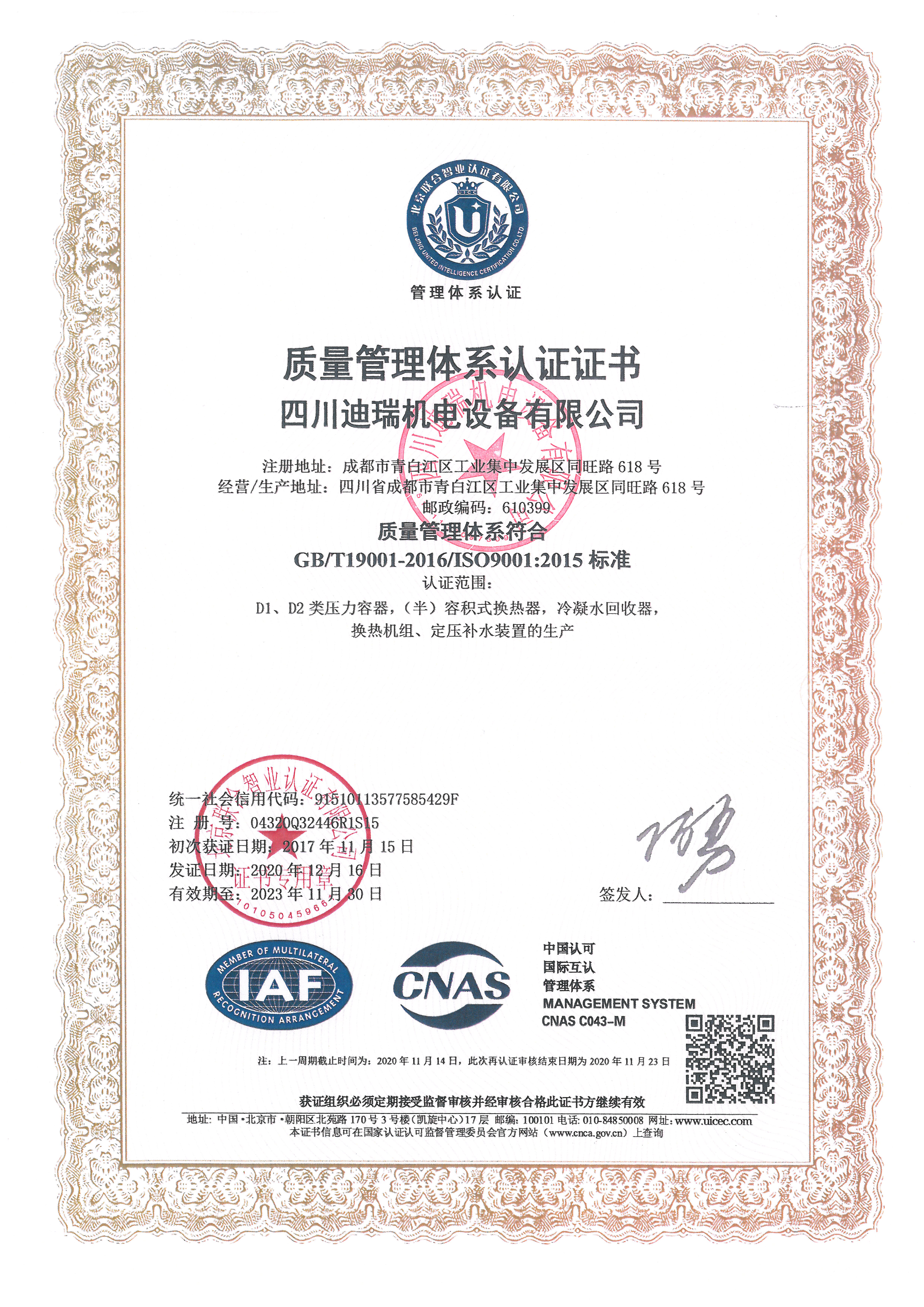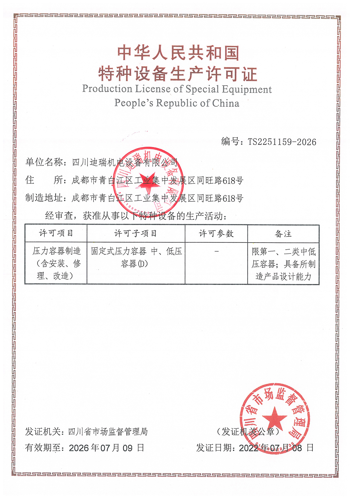 企業(yè)奉行“用戶至上、優(yōu)質(zhì)服務(wù)、持續(xù)改進(jìn)”的宗旨,不斷改進(jìn)產(chǎn)品結(jié)構(gòu),提升產(chǎn)品性能,并與西安交通大學(xué)能源與動(dòng)力工程學(xué)院建立產(chǎn)學(xué)研合作,取得8項(xiàng)實(shí)用新型專(zhuān)利,正在申報(bào)一項(xiàng)發(fā)明專(zhuān)利。企業(yè)通過(guò)D1、D2類(lèi)壓力容器制造許可認(rèn)證和ISO9001質(zhì)量管理體系認(rèn)證,被評(píng)為成都市擬上規(guī)企業(yè)、成都市專(zhuān)特新精企業(yè)和大中華區(qū)酒店工程師協(xié)會(huì)最佳合作單位。